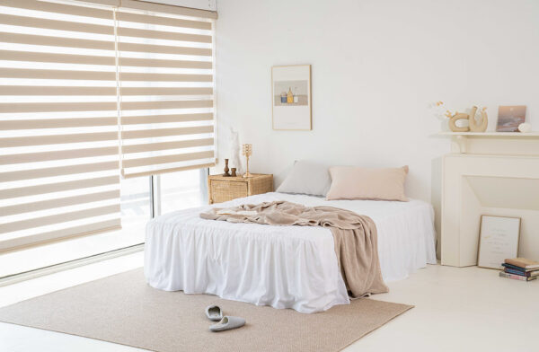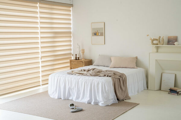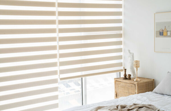 Composition : 100% Polyester Woven Fabric Type : Dual Zebra Remark : Bright metallic with pastel tone
