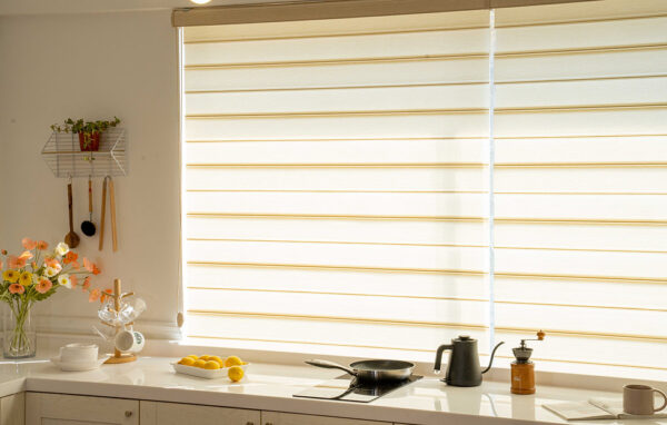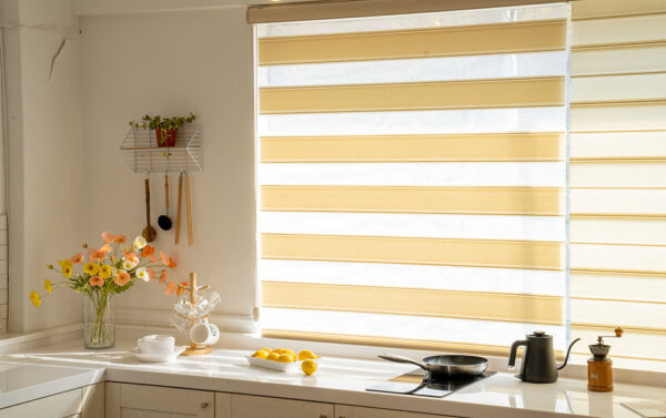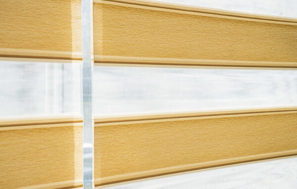 Composition : 100% Polyester Woven Fabric Type : Dual Zebra Size : Solid 12 CM / Sheer 8 CM Remark : 2 Line Pleated Zebra